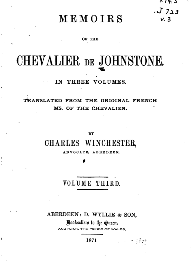 Johnstone served as one of Bonnie Prince Charlie’s aide-de-camps during the 1745 Jacobite Uprising. In the aftermath of Culloden, he was smuggled out of Great Britain by Lady Jane Douglas and eventually found refuge in France. He entered the French army and was promptly sent to Île Royale, known today as Cape Breton Island.